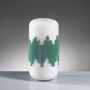 Salviati & c. VASO in vetro lattimo con applicate canne nei toni del verde Adesivo del produttore Produzione [..]