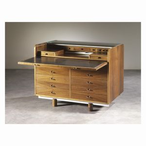 Gianfranco Frattini (Italia, 1926 - Milano, 2004) SCRITTOIO MODELLO 804 in legno, metallo e vetro Produzione Bernini, [..]