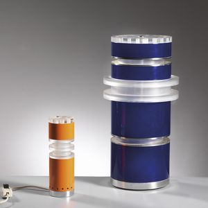 Ingrid Hsalmarson (sec. XX) DUE LAMPADE DA TAVOLO MODELLI ASTA E ALBA in materiale plastico nei toni del blu e [..]