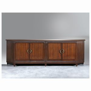 CREDENZA in legno, maniglie in ottone Produzione Italia, 1930 circa cm H97xL310xP54 WOODEN SIDEBOARD, BRASS [..]
