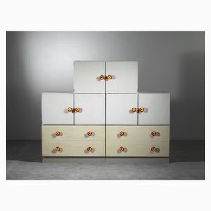 Ettore Sottsass (Innsbruck, 1917 - Milano, 2007) CINQUE MODULI DELLA SERIE CUBIROLO in legno laminato e pomelli [..]