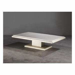 Marzio Cecchi (Firenze, 1940 - New York, 1990) TAVOLO BASSO struttura in legno rivestita in pelle bianca, piano [..]