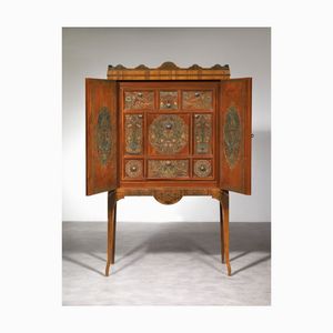 MOBILE in legno impiallacciato e intagliato con decori a fiori e volatili Produzione Italia, 1940 circa cm H182xL103xP47,5 [..]