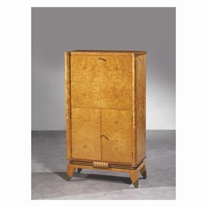 MOBILE CONTENITORE in legno impiallacciato in radica, con piano a ribalta Produzione Francia, 1930 circa cm H127xL73xP37,5 [..]