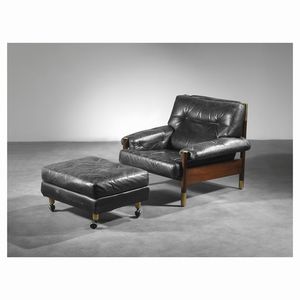 Carlo de Carli (Milano, 1910 - 1999) POLTRONA E POGGIAPIEDI MODELLO SELLA struttura in legno, imbottita e rivestita [..]
