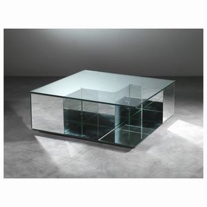 Gianni Pasotto (sec. XX) TAVOLO BASSO MODELLO GATSBY in cristallo e specchio su ruote Produzione Cristal Art, [..]