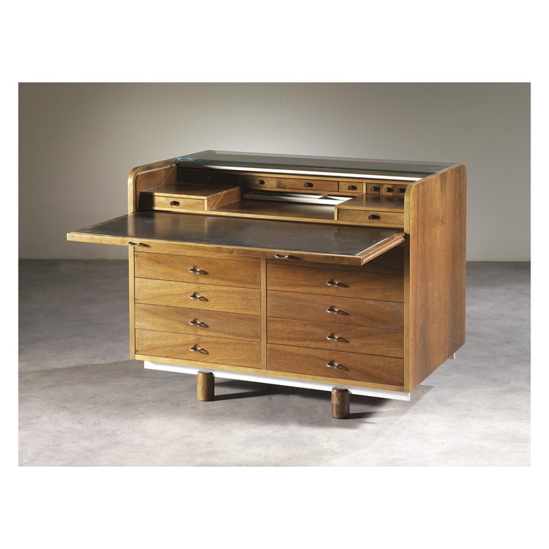 «804» WRITING DESK, WOOD, METAL AND GLASS STRUCUTURE