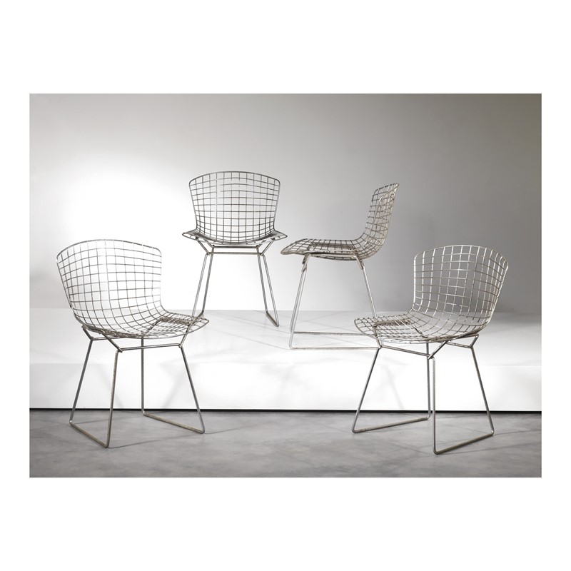 FOUR «BERTOIA» AND TWO «DIAMOND» CHAIRS, METAL WIRE STRUCTURE
