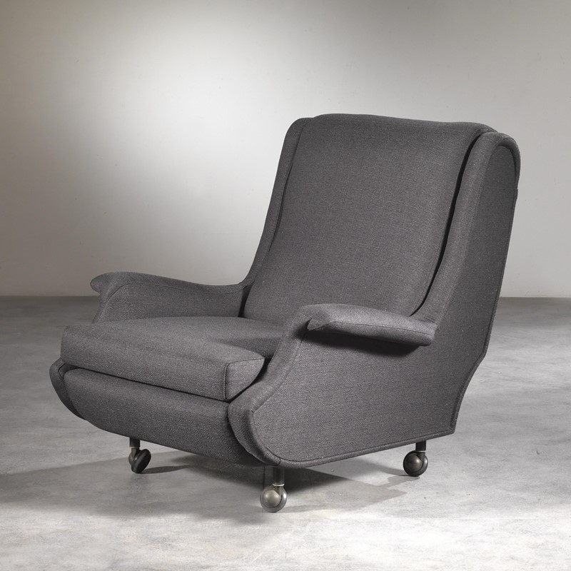 «REGENT» ARMCHAIR, METAL STRUCTURE, DARK GRAY FABRIC UPHOLSTERY
