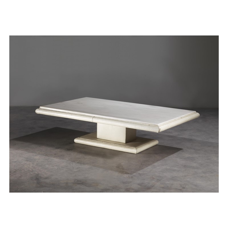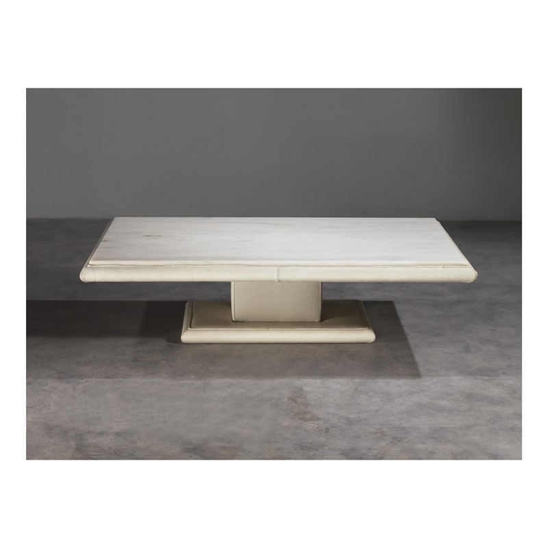 struttura in legno rivestita in pelle bianca, piano in marmo