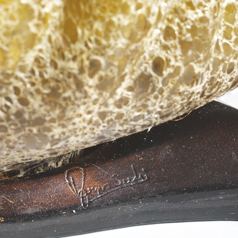 TABLE LAMP, GLASS AND WOOD, SNAIL SHAPED