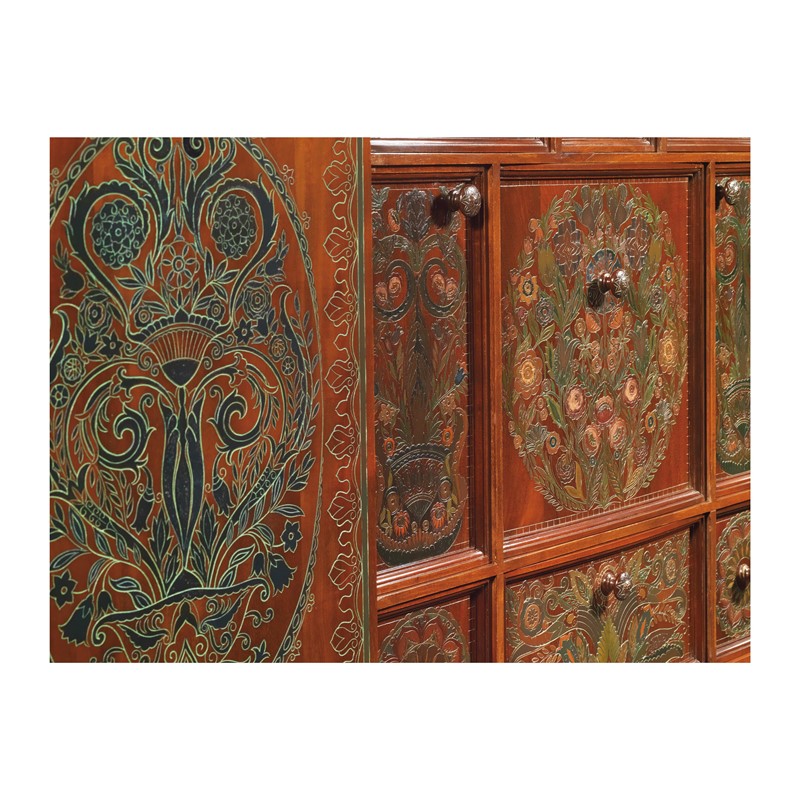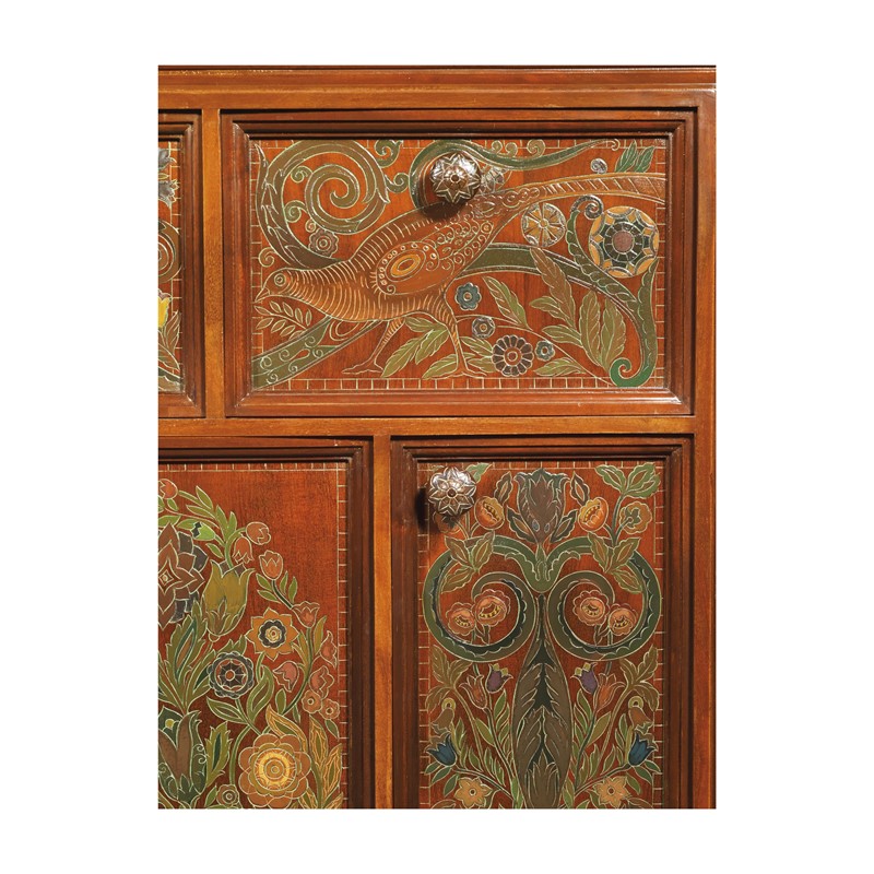 WOODEN SIDEBOARD WITH FLOWERS AND BIRDS CARVING