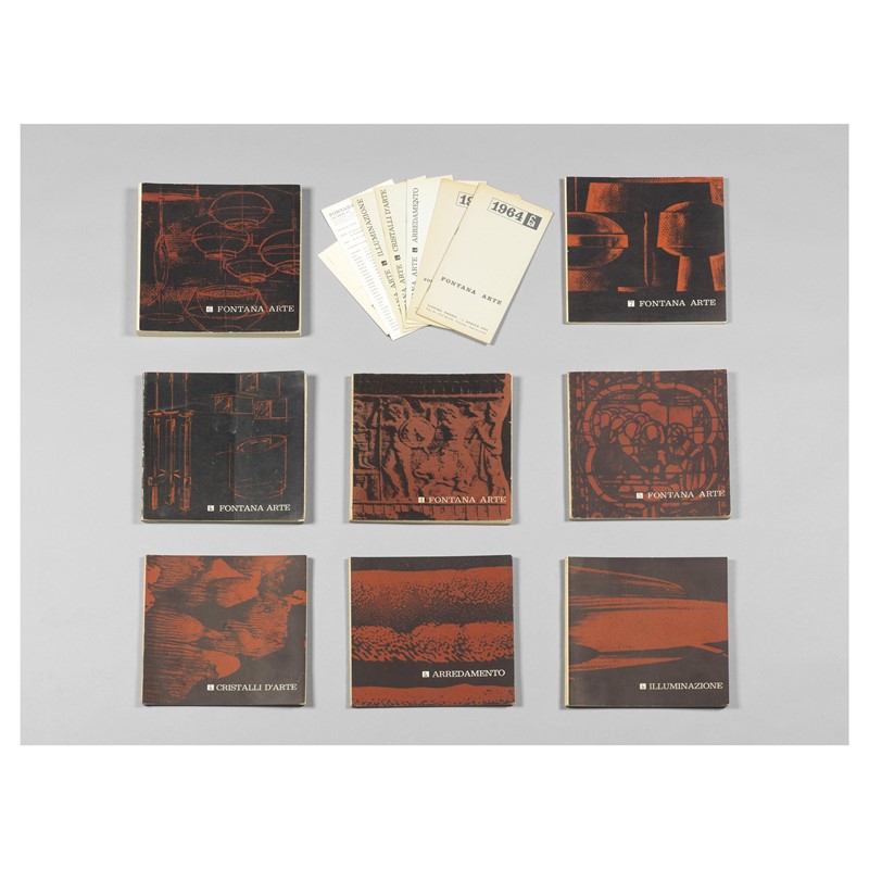 Otto cataloghi di produzione e sei listini Fontana Arte