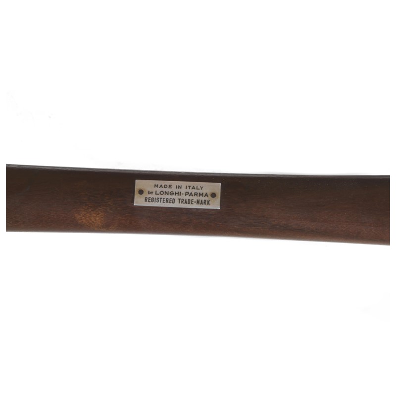 struttura in legno, seduta rivestita in pelle nei toni del marrone