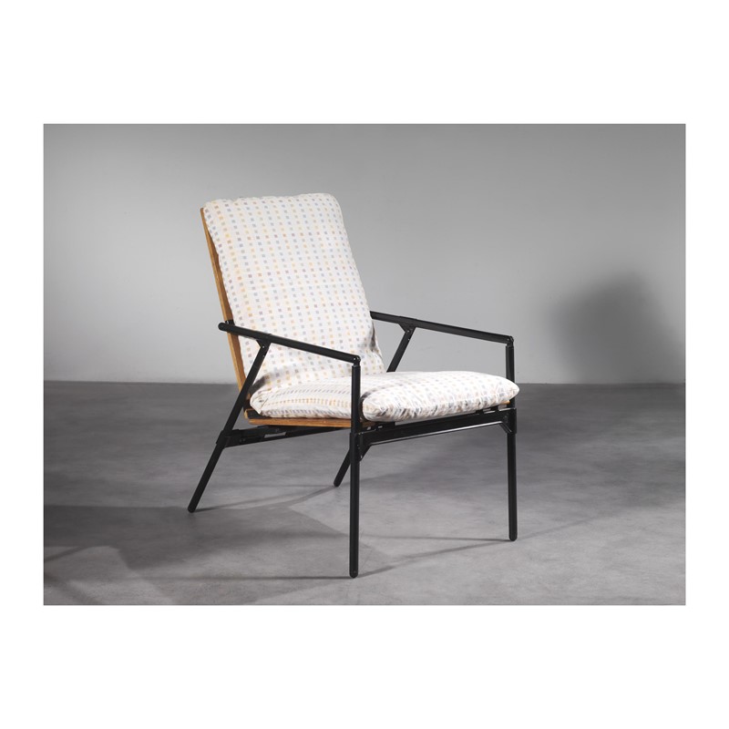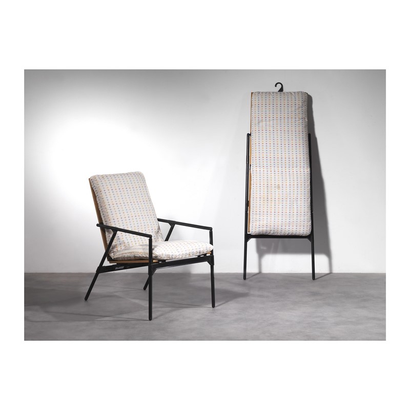 TWO «NENA» FOLDING ARMCHAIRS, WOODEN AND METAL STRUCTURE, REMOVABLE CUSHIONS