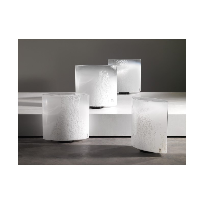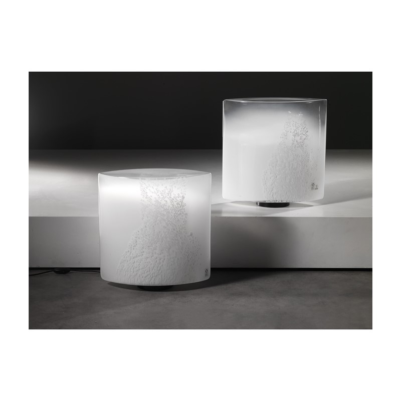 Rosanna Toso (Murano, 1941 - 2001) COPPIA DI LAMPADE MODELLO IDRA 41 in vetro lattimo a murrine Adesivo del produttore sul vetro Produzione Leucos, Italia, 1970 circa cm H41,5xL40,5xP18