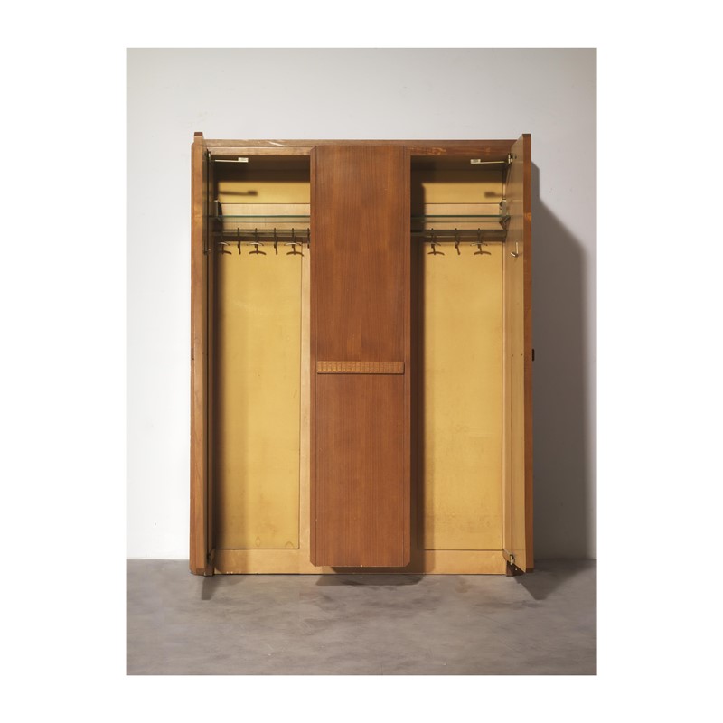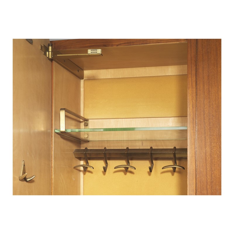 in legno, mensole e appendiabiti interni in vetro e ottone