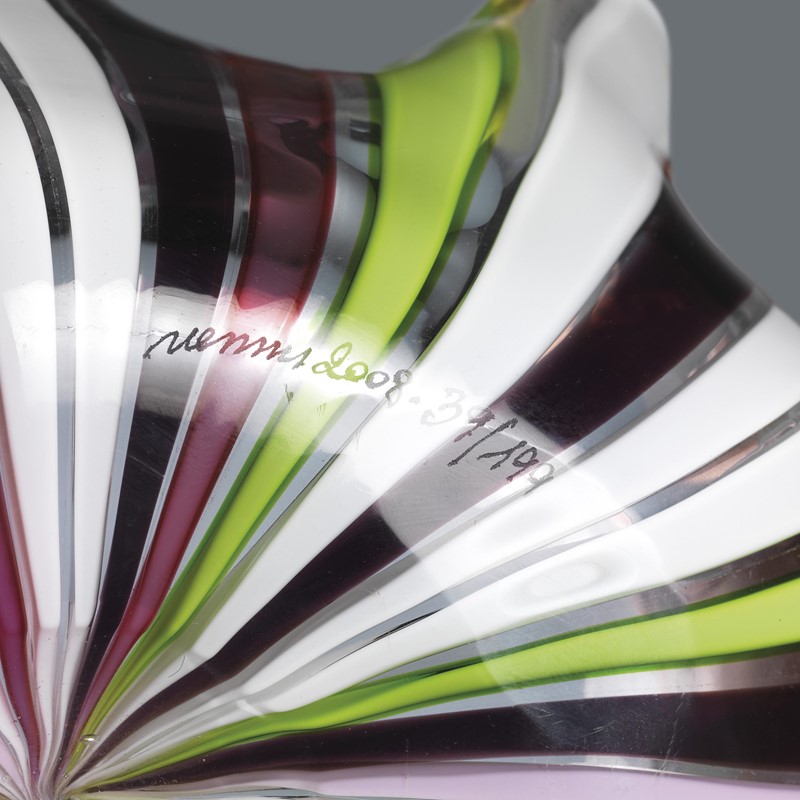 Firma, data e numerazione alla base sul fondo, adesivo del produttore