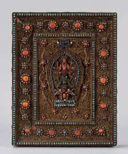 h cm 35,7 x l cm 28 montata su pannello in legno, centrata da divinità