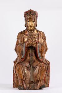 h tot cm 178; la scultura h cm 98  finemente intagliata e decorata raffigurante Guanyin (base in legno) [..]