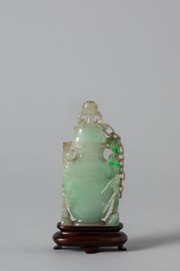h cm 12,3 (base inclusa) decorato a rilievo con rami fioriti e uccellini (con base in legno)