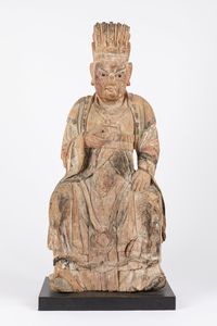 h cm 105 raffigurante saggio assiso, tracce di pigmenti (su base in legno)