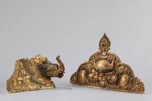 (misure diverse) il primo decorato a rilievo a motivi stilizzati, Cina secolo XVIII/XIX; il secondo a invetriatura [..]