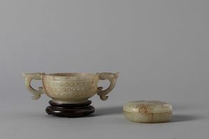 g 358,6; l. max cm 24 x prof. max cm 11.3 finemente intagliato a motivo di doppia pesca a motivi floreali e [..]
