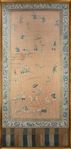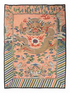 Tra i fiori all’occhiello dell’asta troviamo un prezioso vestito di corte, risalente alla metà del secolo XIX, che insieme ad un grande piatto decorato con gli Otto Simboli Buddisti, proviene dalla collezione di un diplomatico italiano alla corte cinese agli inizi ‘900.