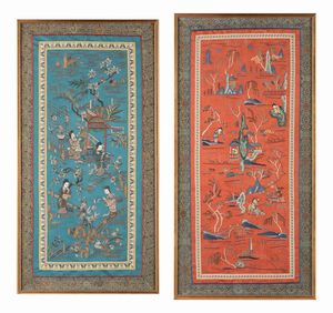 h max cm 64.5 ricamati a motivo di figure in paesaggio (incorniciati)