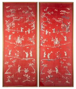 h cm 153 decorati con arbusti fioriti e uccellini (con basi in legno laccate e riccamente decorate a motivi [..]