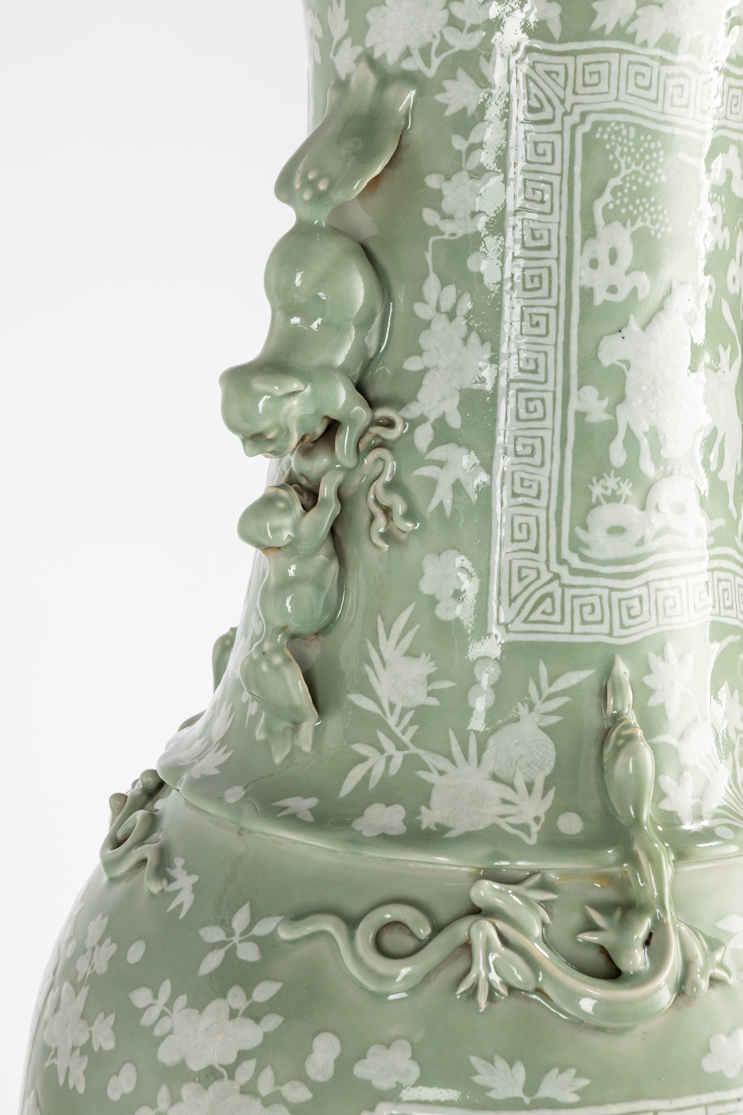 Coppia di grandi vasi a fondo celadon. Cina, seconda metà secolo XIX