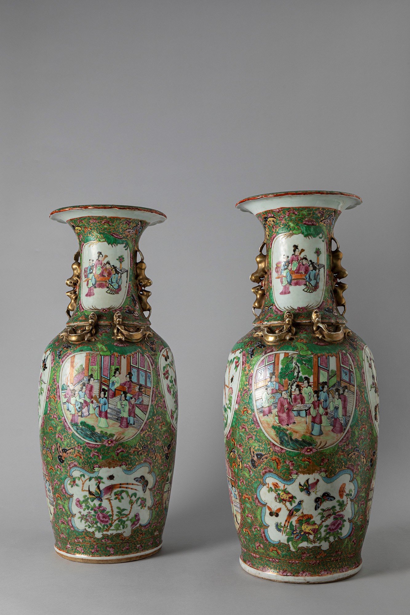 Coppia di vasi in porcellana Canton famiglia rosa. Cina, secolo XIX