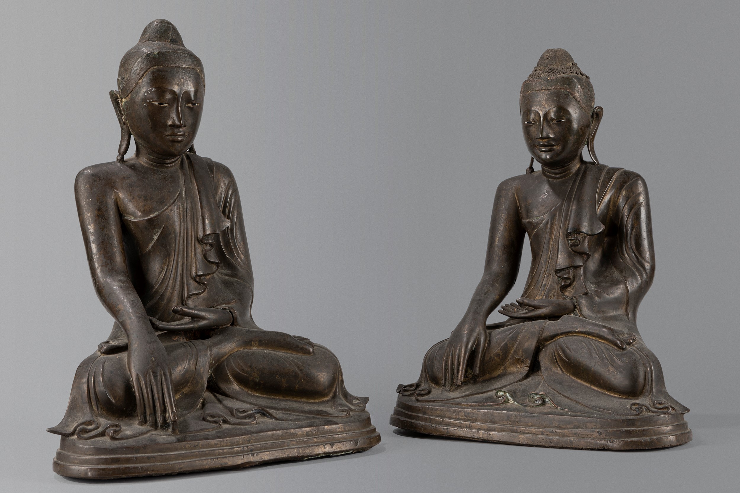 Due Buddha assisi in bronzo. Burma, secolo XIX