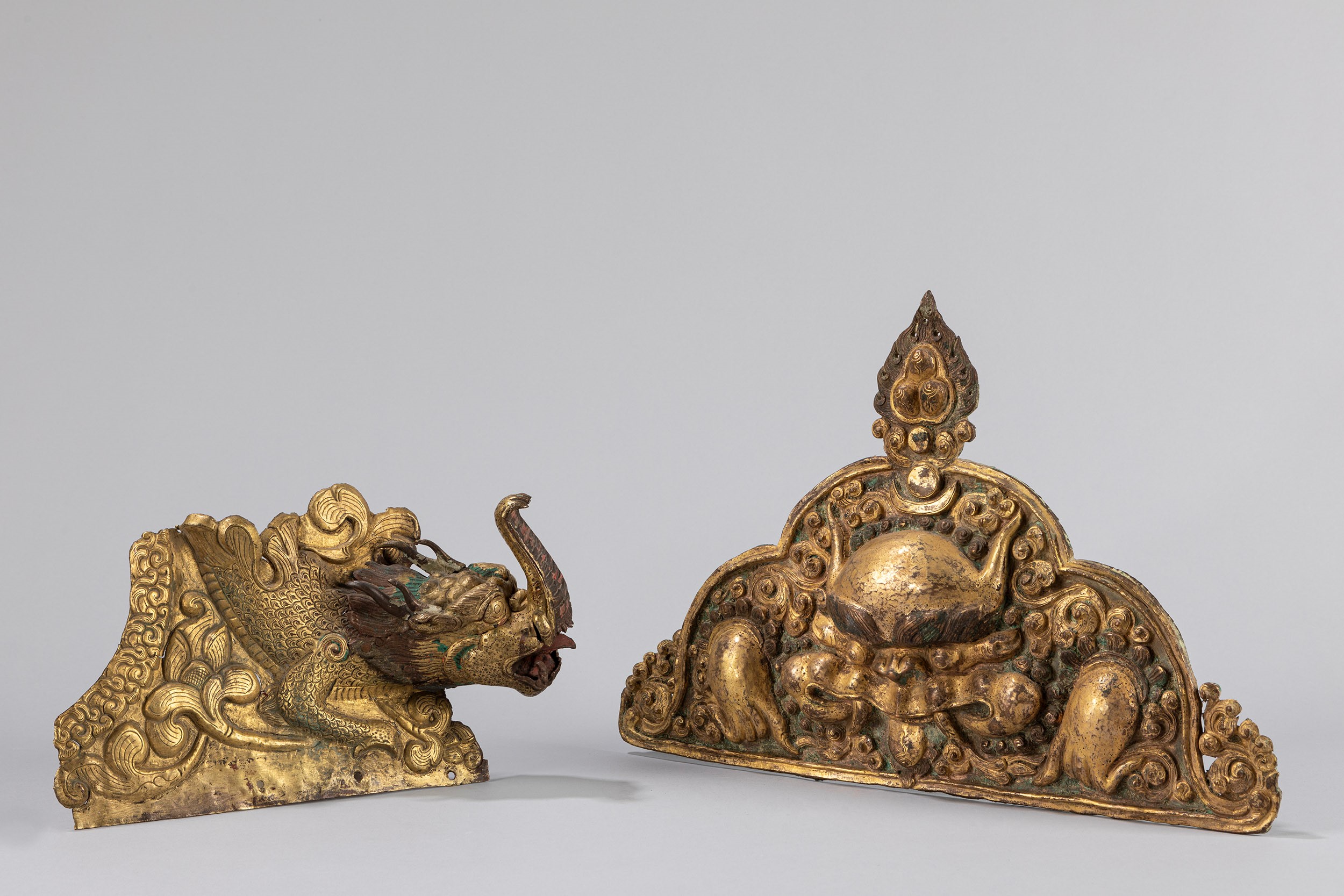 Due fregi in rame sbalzato e dorato. Tibet, secolo XVIII