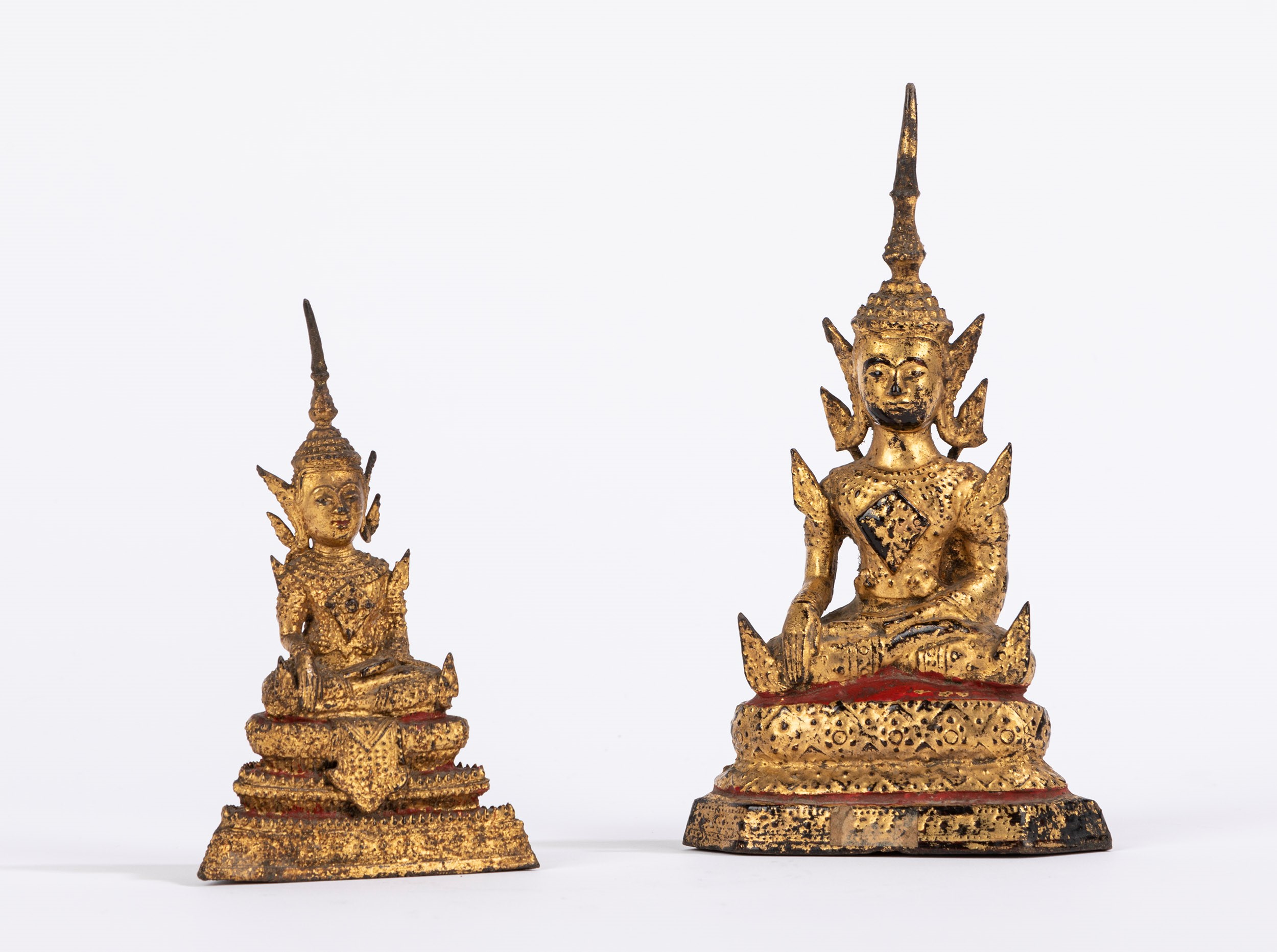 Due sculture in bronzo dorato. Thailandia, periodo Rattanakosin, secolo XIX