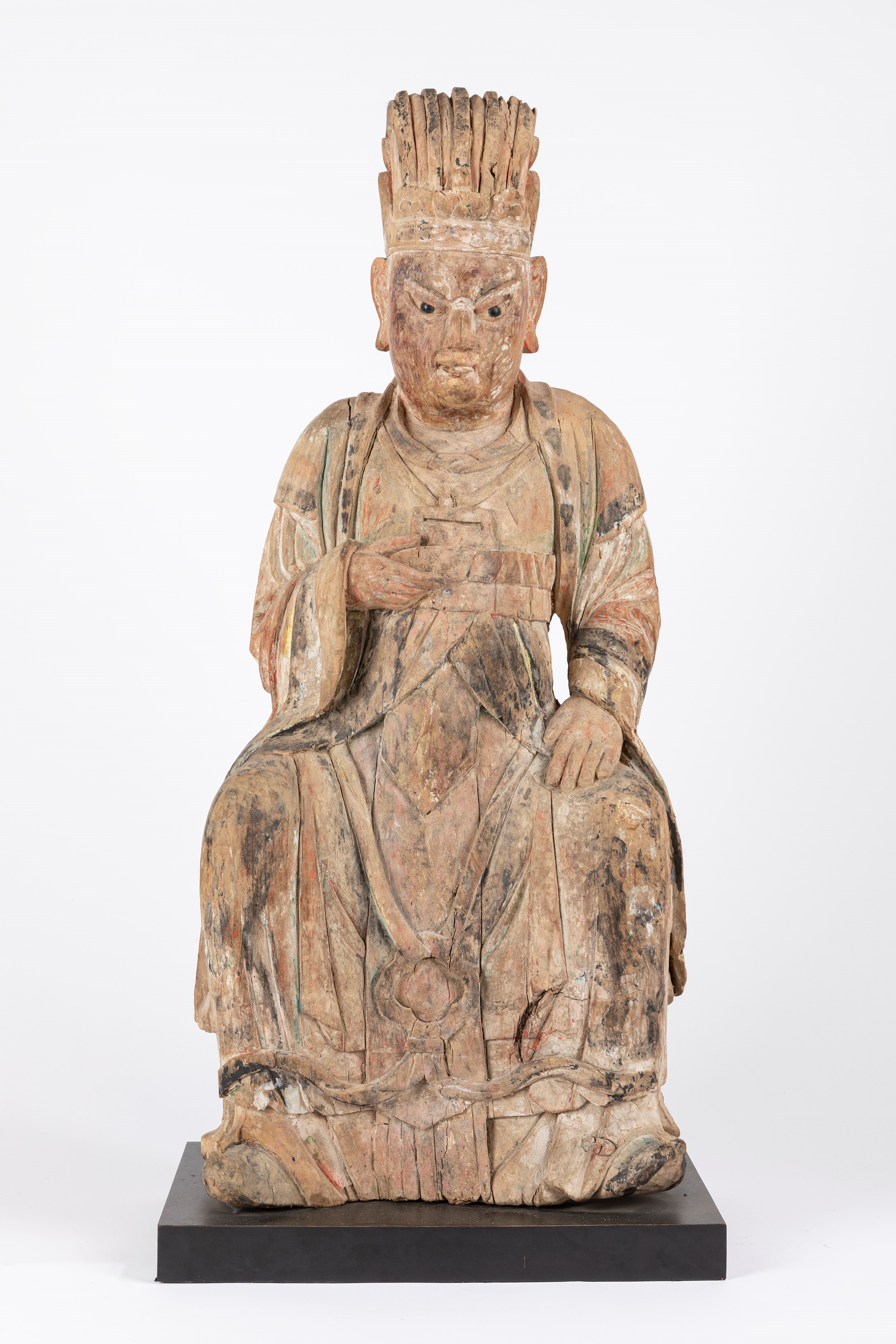 Grande scultura in legno intagliato . Cina, fine dinastia Ming