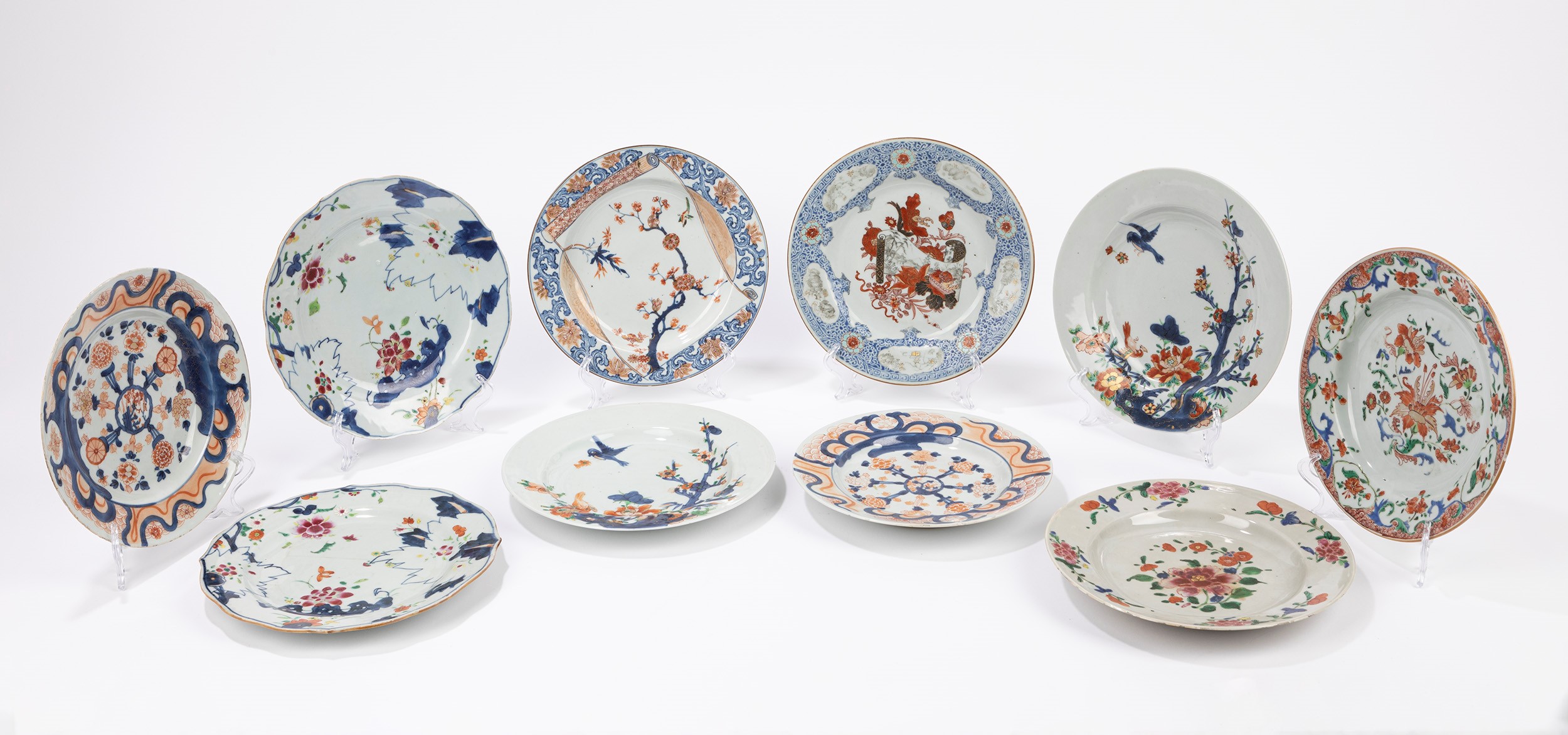 Lotto di dieci piatti in porcellana policroma. Cina, secolo XVIII per l'esportaz [..]