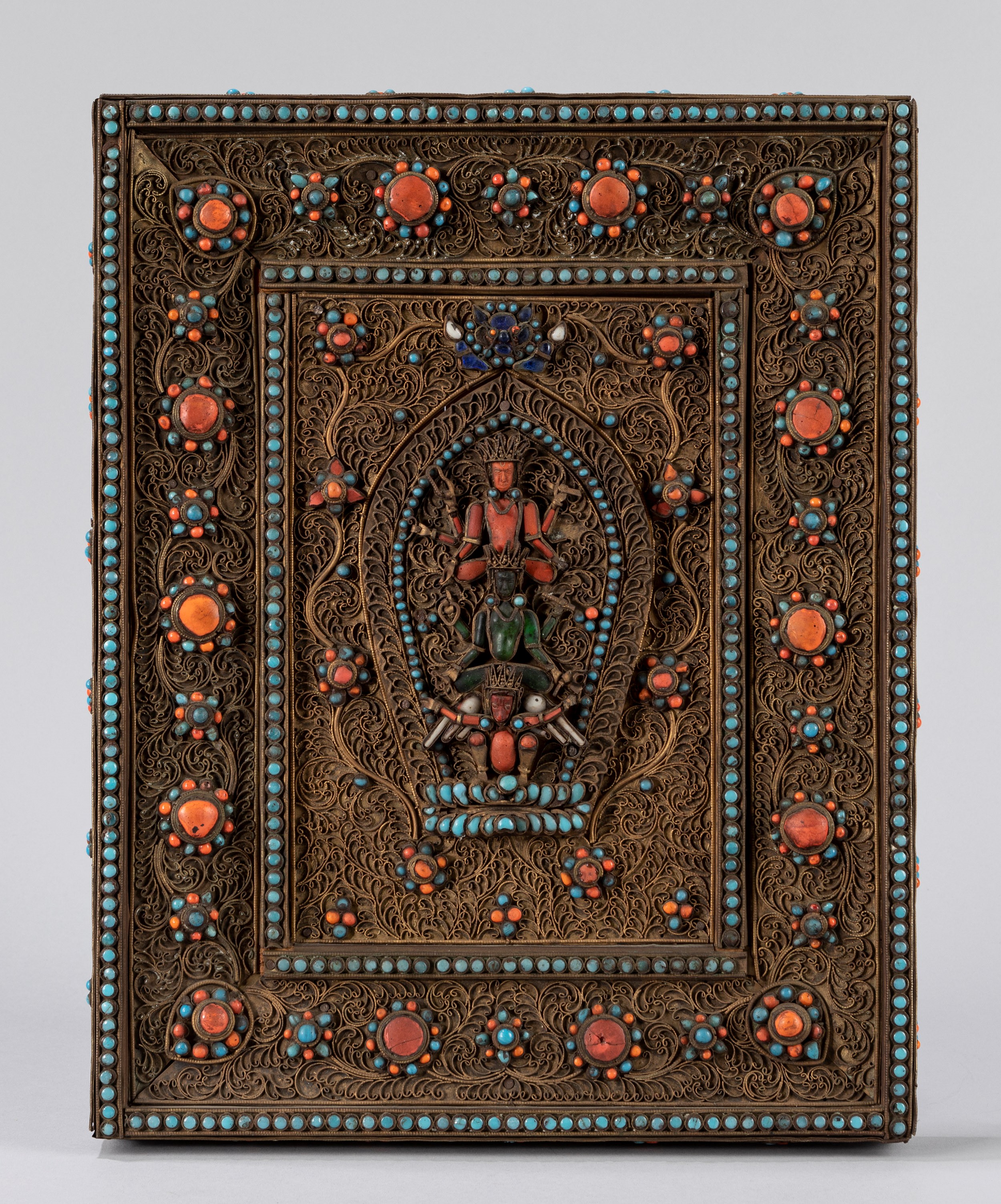 Placca in filigrana e paste vitree. Tibet, secolo XIX