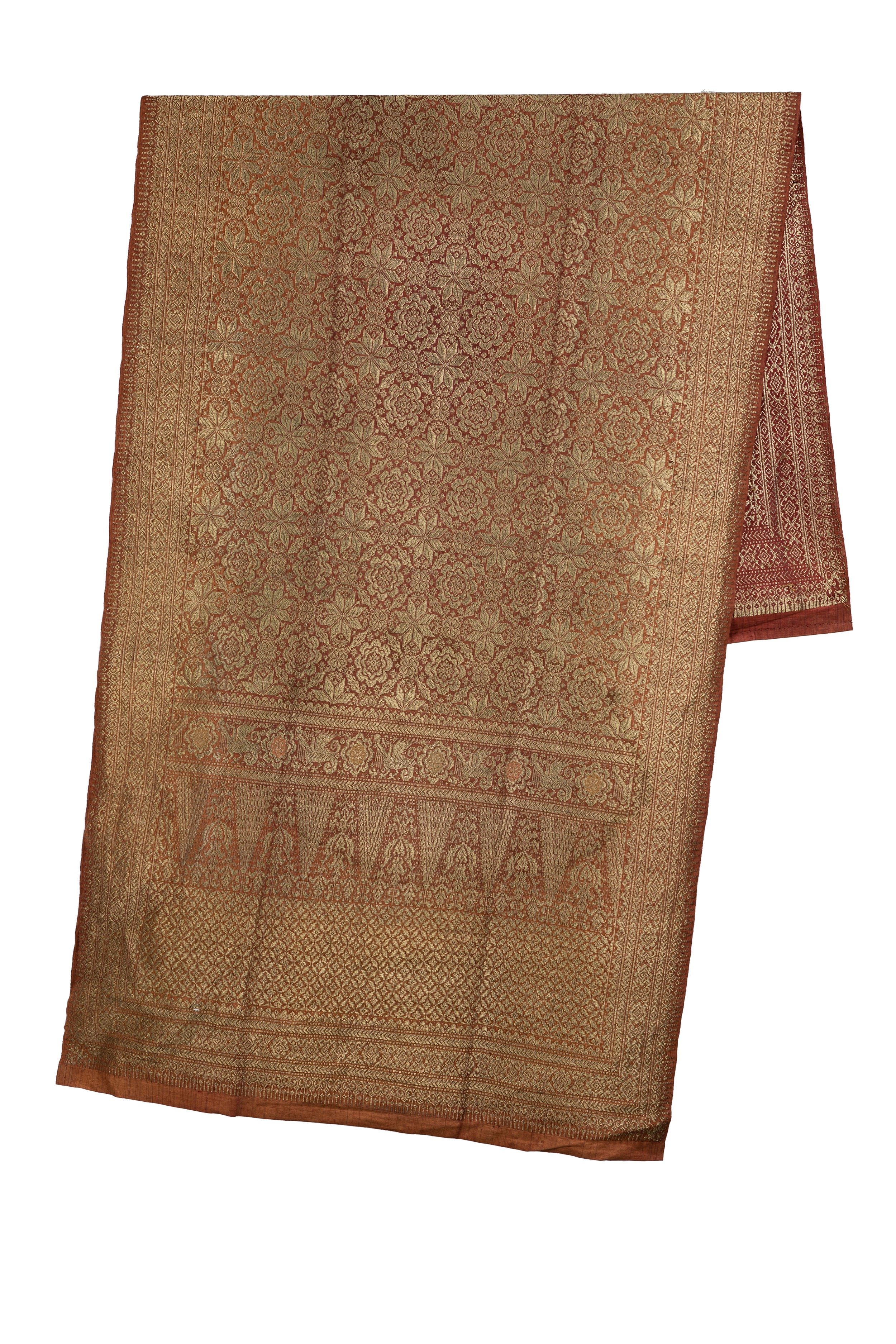 Sarong Songket in seta rossa tramata con fili d'oro. Sumatra, Indonesia, inizi secolo [..]