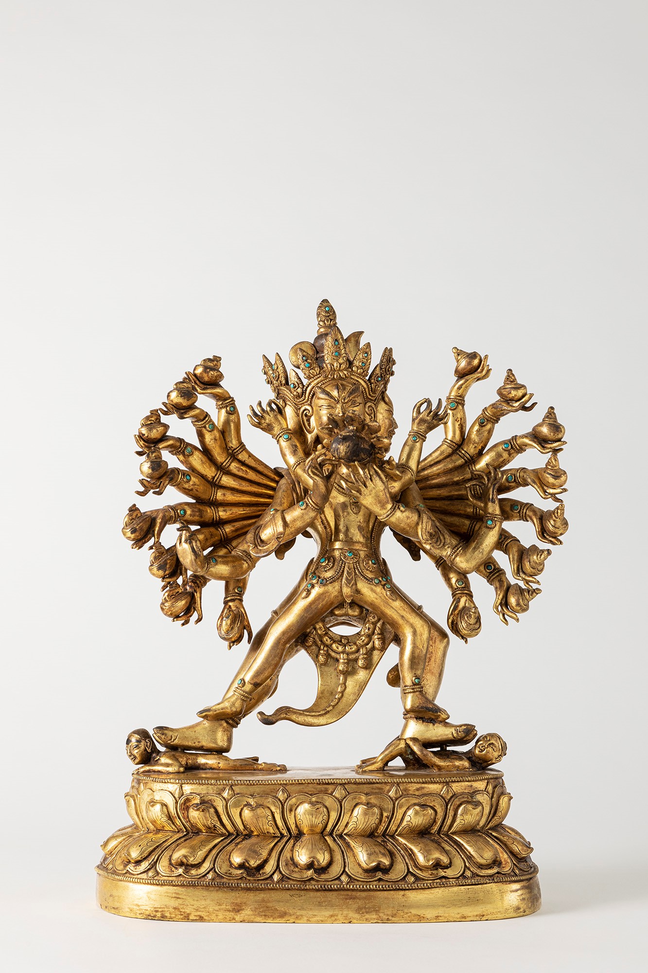 Scultura in bronzo dorato raffigurante Hevajra. Cina, secolo XVIII-XIX