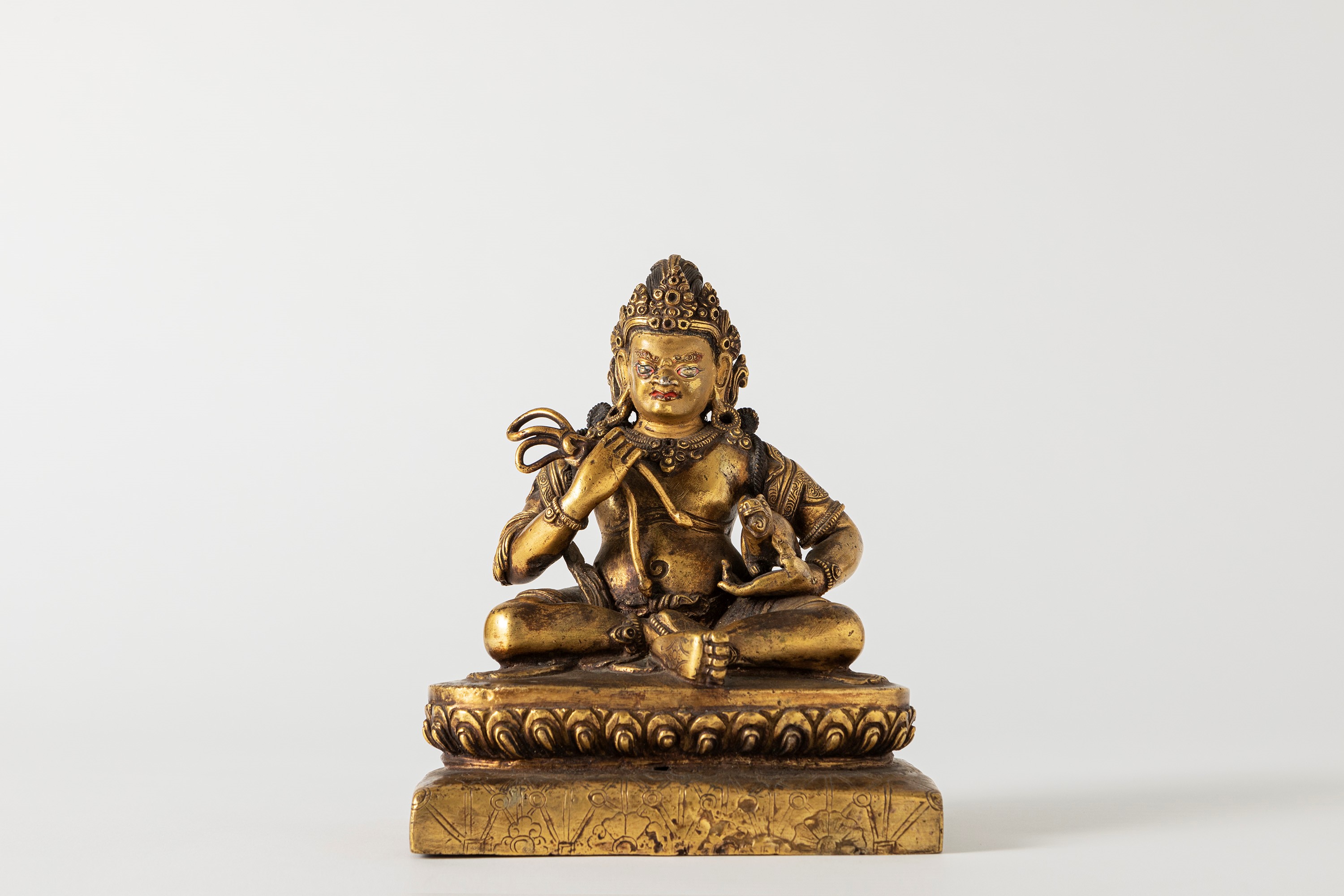 Scultura in bronzo dorato raffigurante Jambhala. Tibet, secolo XVIII