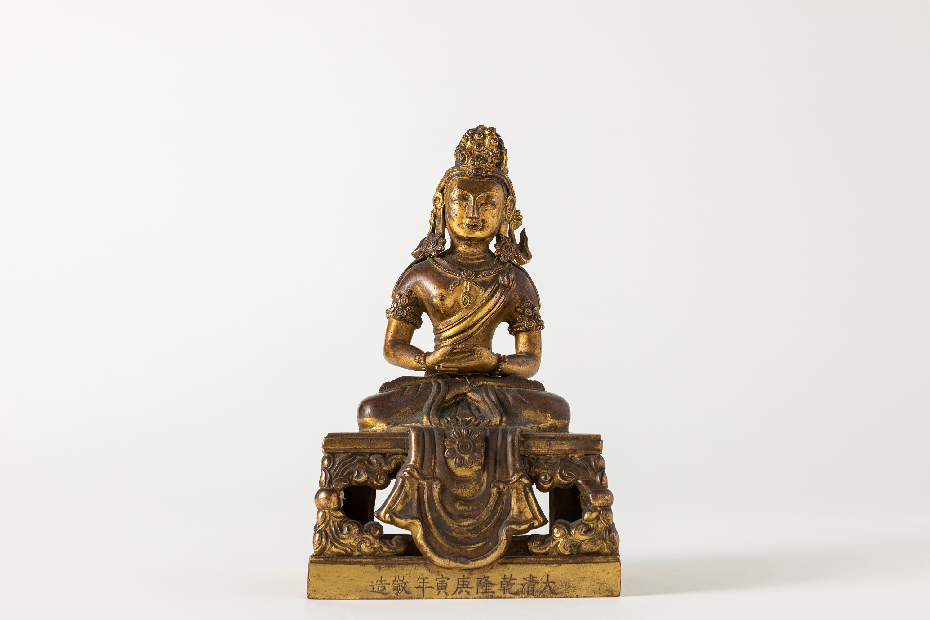Scultura in bronzo raffigurante Amitayus. Cina, periodo Qianlong, datato 1770
