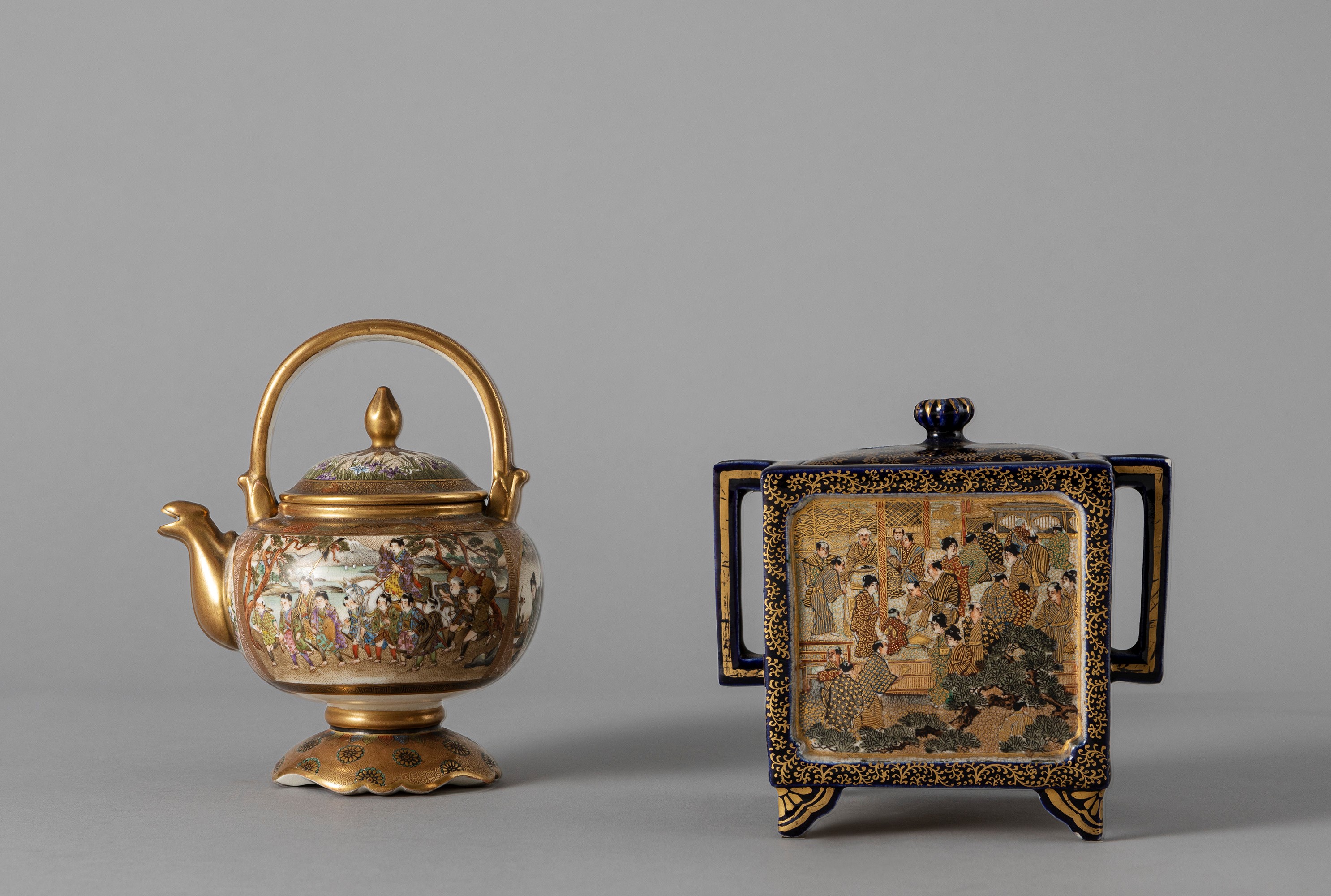 Una teiera e una scatola portaprofumi in ceramica Satsuma. Giappone, periodo Meiji [..]