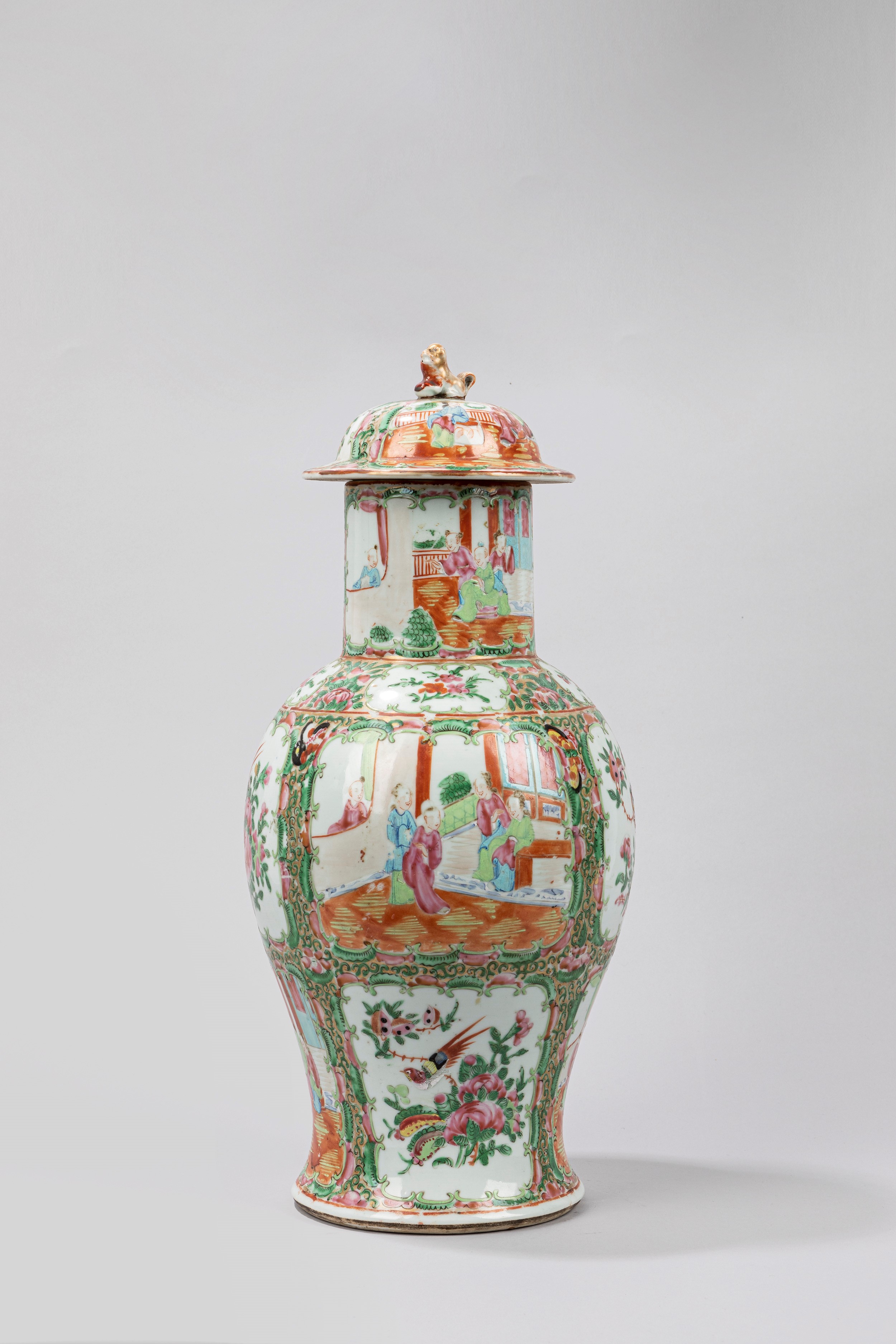 Vaso con coperchio in porcellana Canton . Cina, fine XIX secolo