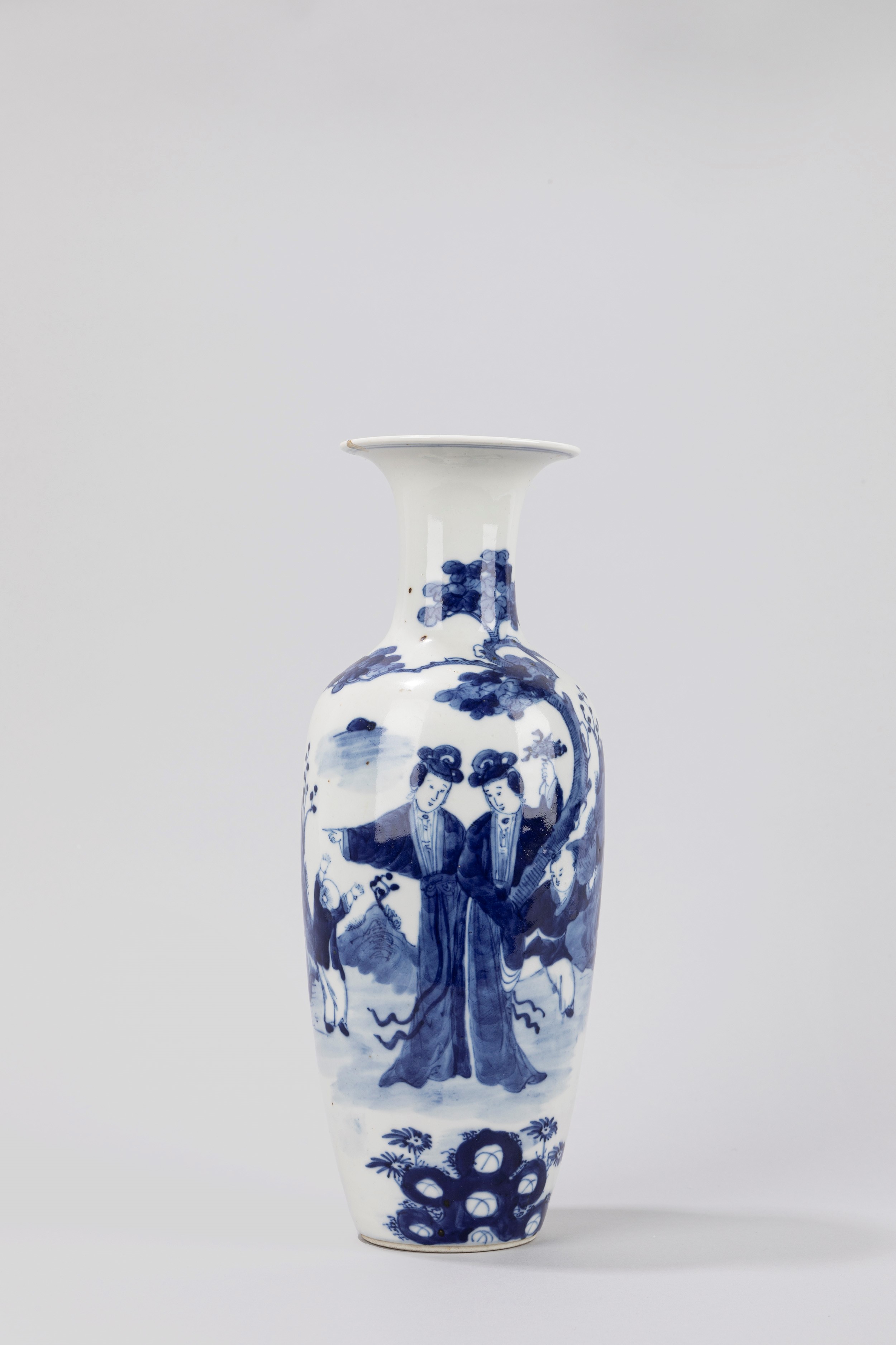 Vaso in porcellana bianca e blu. Cina, fine dinastia Qing
