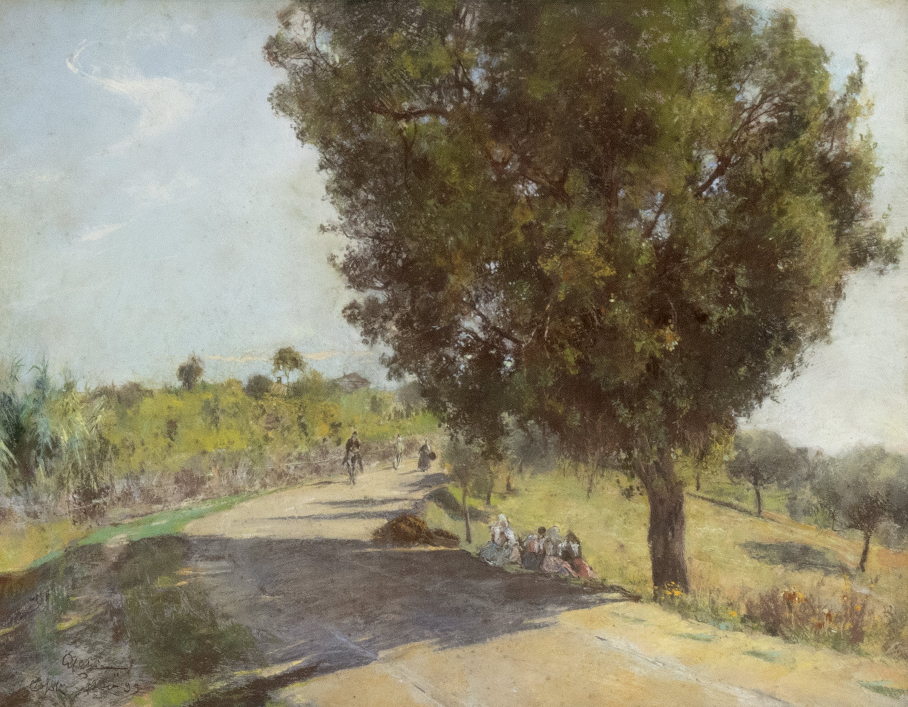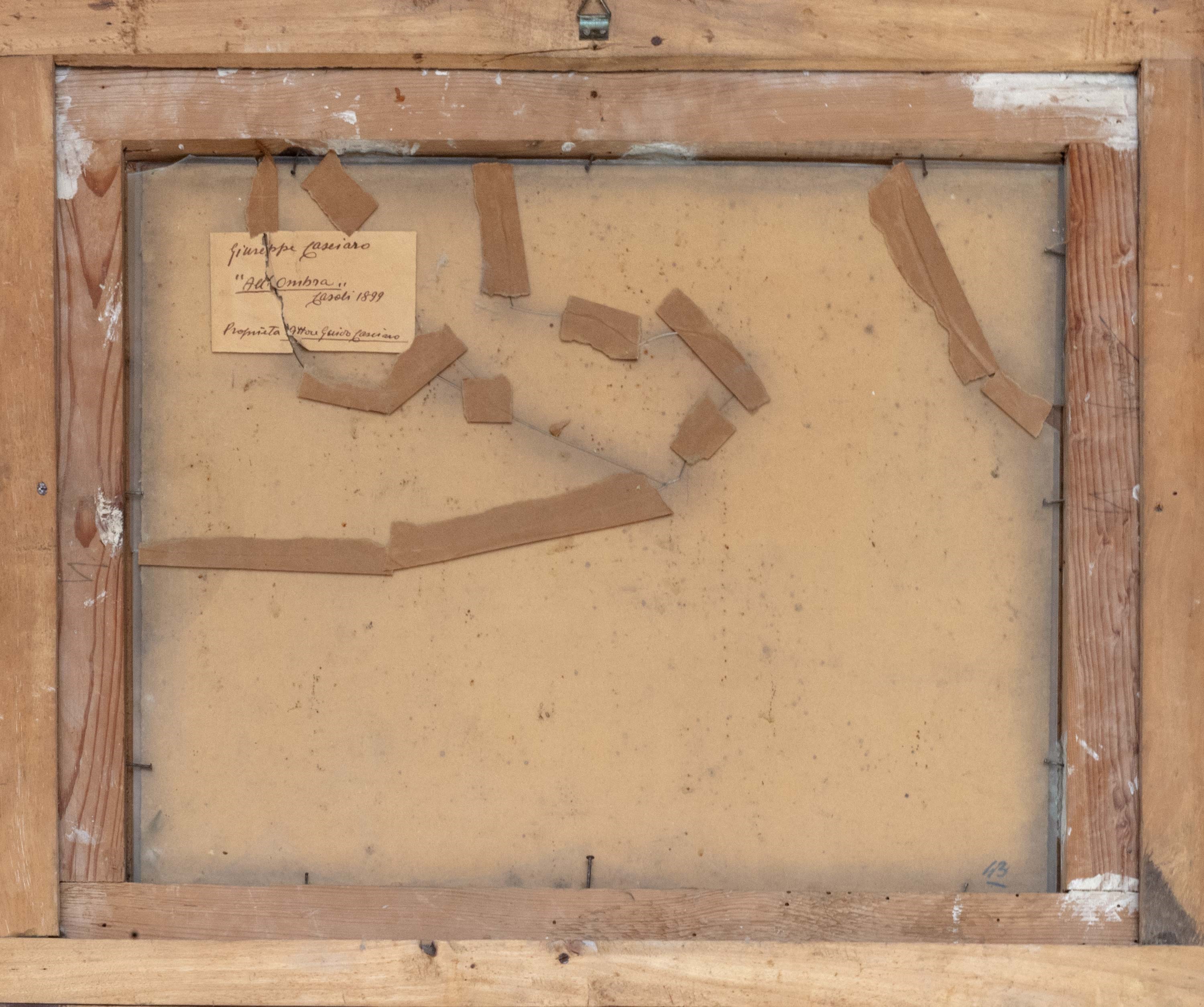 Sul retro: sul cartoncino, antico numero di riferimento (43); sul vetro di supporto, cartello manoscritto di Guido Casciaro con riferimenti al dipinto.