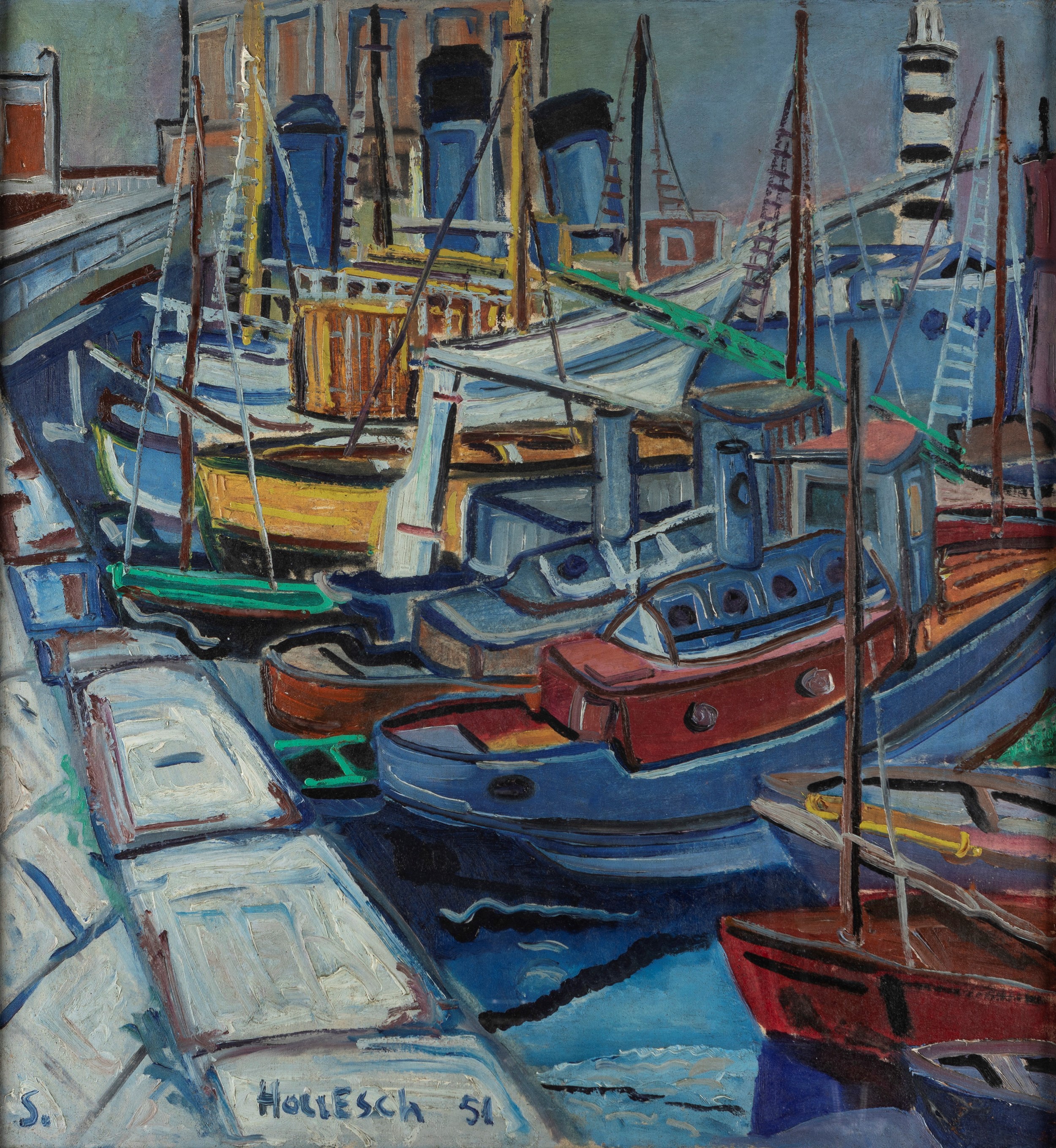 Sul retro firmato, datato e locato, sia sulla tela che sul telaio: HOLLESCH 51 TRIESTE; etichette parzialmente leggibili relative alla provenienza.