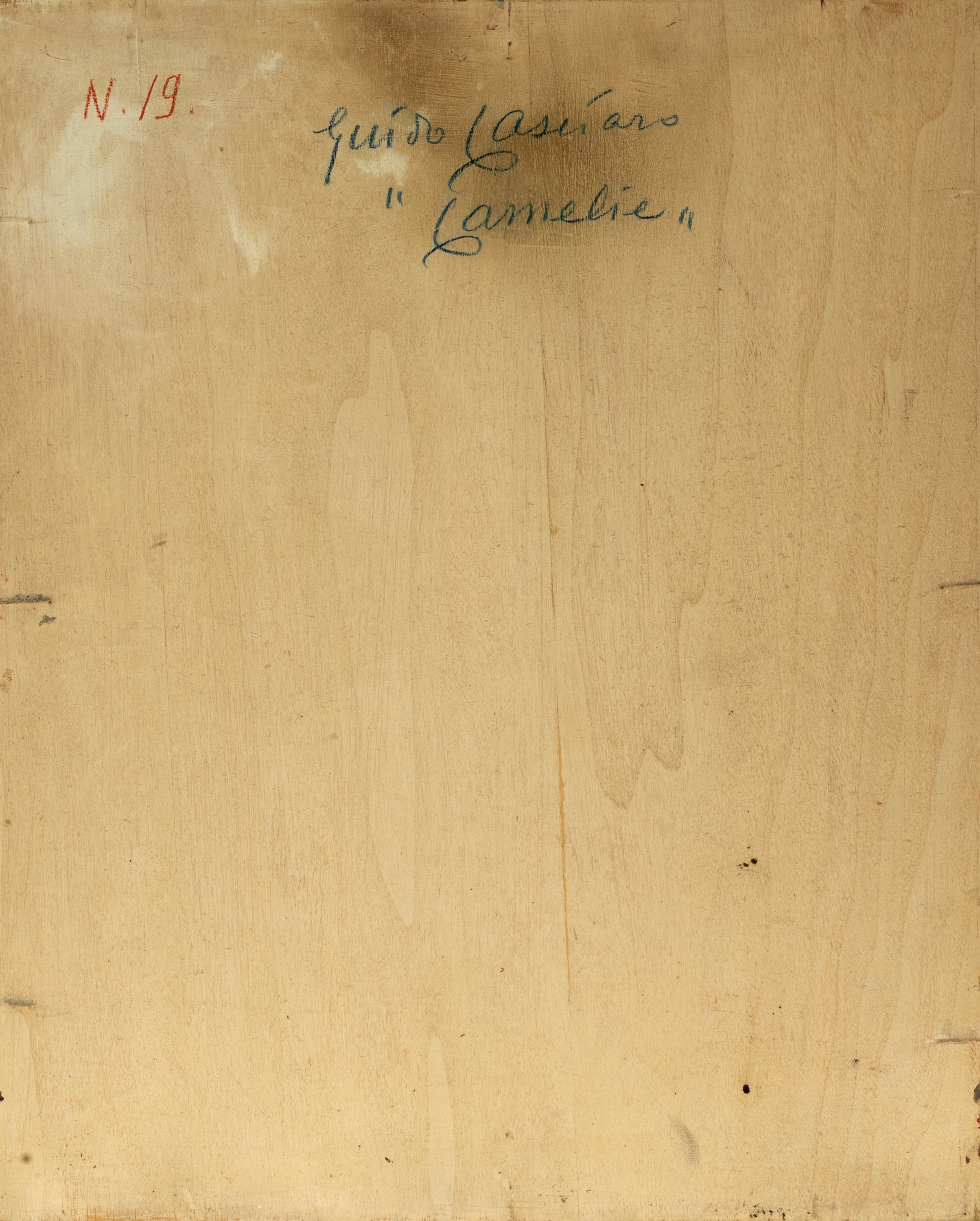 Sul retro: firma e titolo di mano dell’artista; numero di riferimento (19).