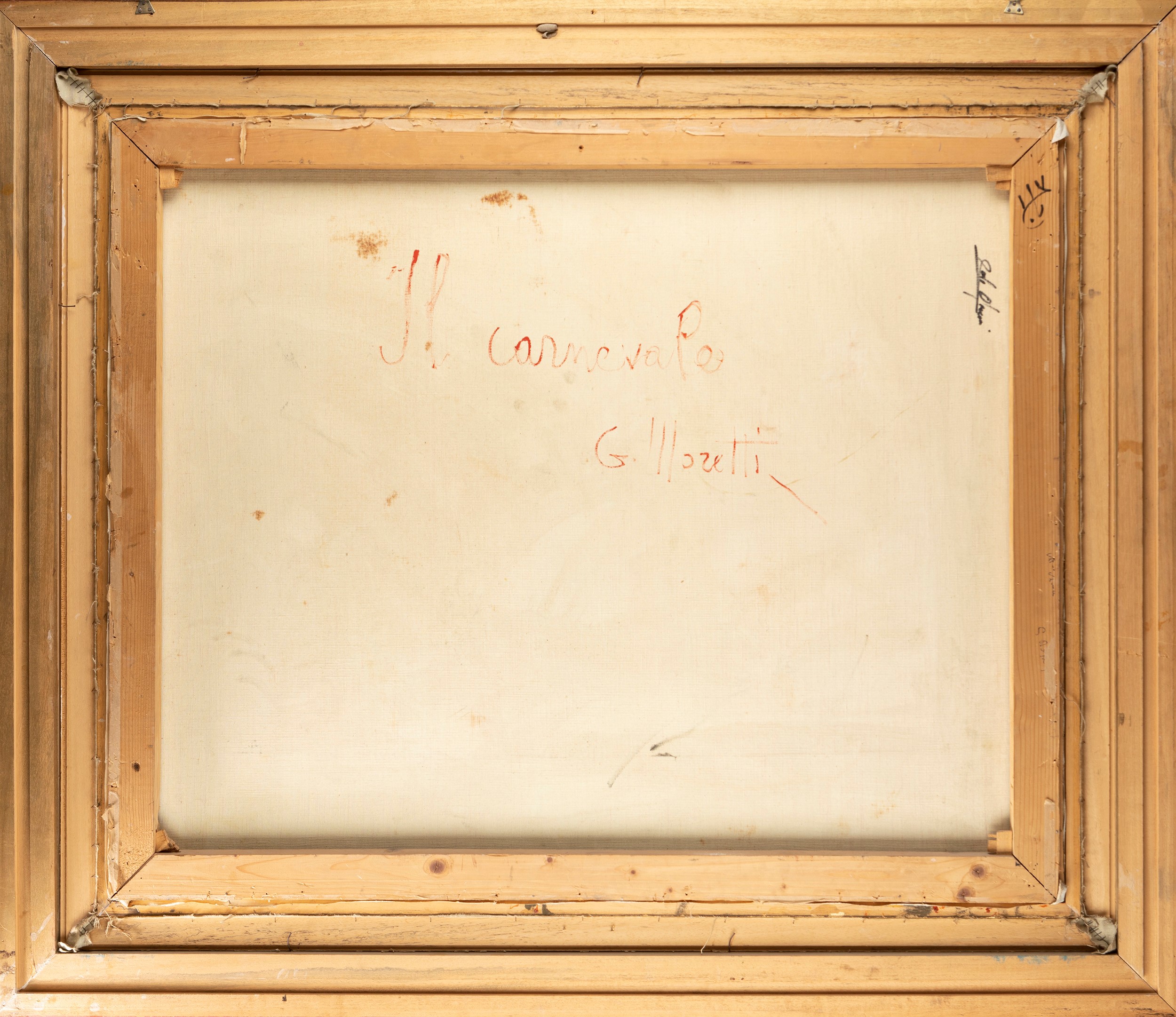 Sul retro, sulla tela, firmato e titolato: Il carnevale / G. Moretti.